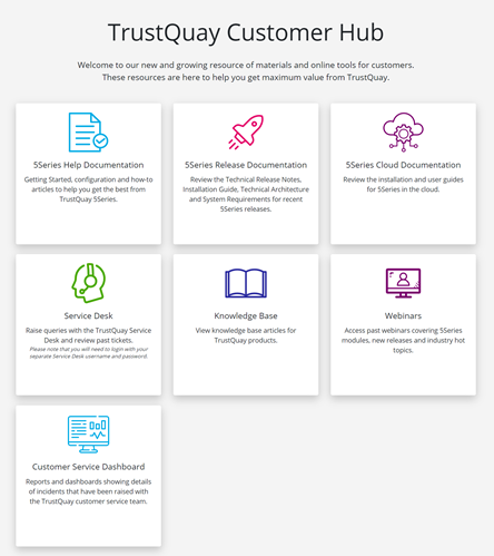 Access to the Customer Service Desk and whole host of other products and services is provided through the TrustQuay Customer Hub.