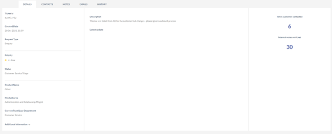 Notes that be a useful way of providing updates, additional information and responses to questions to the TrustQuay Customer Service team. Such notes are visible to all members of the Customer Service team.